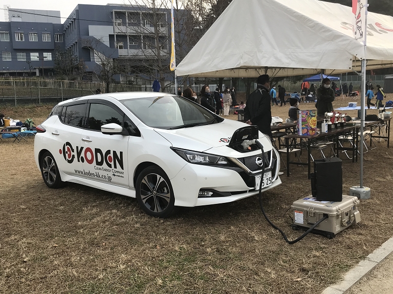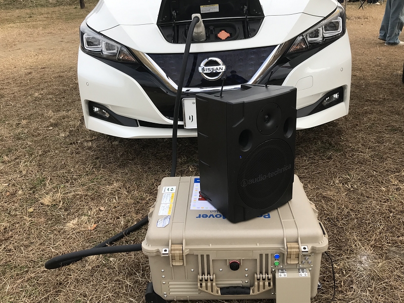 キッチンカーの電源は電気自動車(日産リーフ)より供給しました。