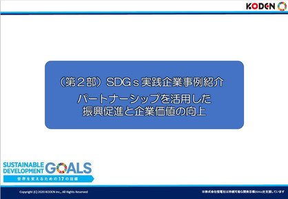 失敗談なども交えながらお話させていただき、「持続可能な開発目標」の意義であったり、我々KODENグループの使命を再確認させていただく貴重なお時間を過ごさせていただきました。